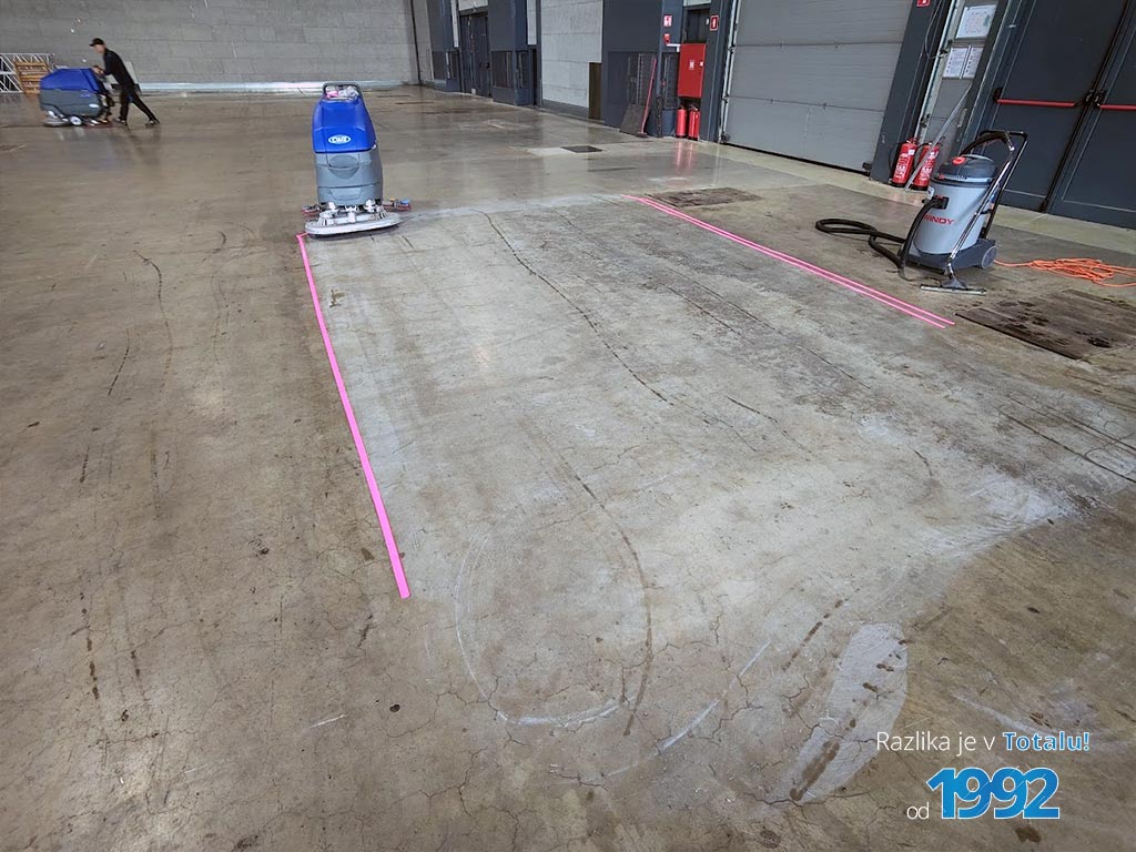 V 2.500 m² veliki dvorani smo uspešno izvedli poliranje betonskih tal do zrcalnega videza. S posebnimi postopki brušenja in poliranja smo odstranili nepravilnosti, zaprli površino ter dosegli visok sijaj, ki prostoru daje moderen in urejen videz.