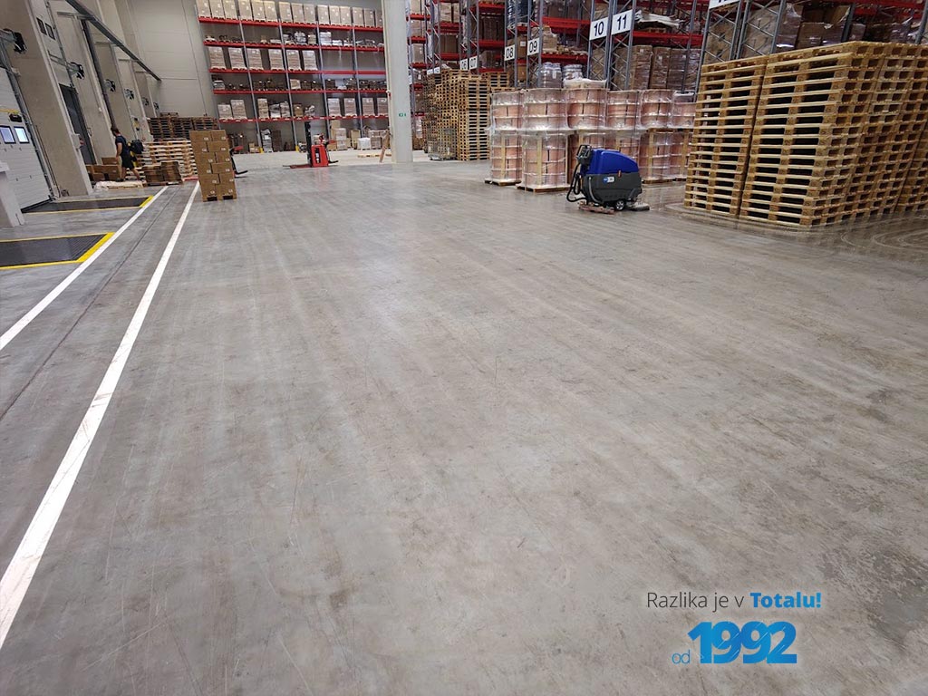 Za našo stranko smo uspešno izvedli strojno čiščenje skladišča po poplavi, vključno s temeljitim čiščenjem betonskih tal po izteku sprinkler sistema. Poskrbeli smo za odstranjevanje vseh nečistoč, strojno globinsko čiščenje ter ponovno vzpostavitev čistoče in varnega delovnega okolja.